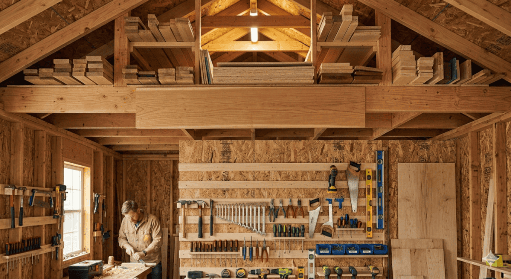 Idea #2: The Overhead “Lumber Loft” (Rafter Storage)